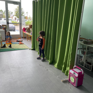 Some of our older students chipped in at the last minute to make our nest and our narrator's "tree stump". They used natural materials from our garden to bring the story to life.